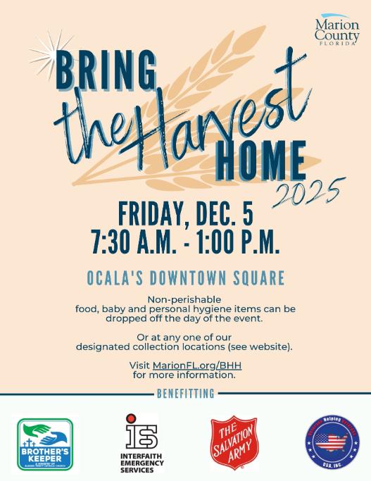 - Items can be dropped off on the day of the event or at any designated collection location (MarionFL.org/BHH).