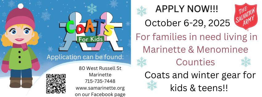 Coats for Kids application is now open. Sign up by Oct 29th.