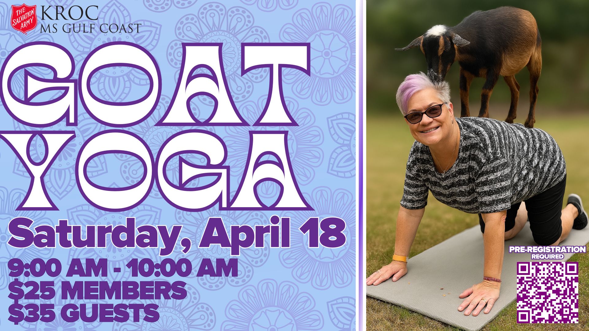 Gates open 30 minutes prior to event and stay open 30 minutes after for all your friendly goat photography!