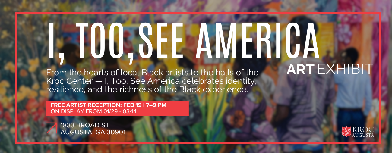 From the hearts of local Black artists to the halls of the Kroc Center — I, Too, See America celebrates identity, resilience, and the richness of the Black experience. Join us for our free artist reception on Thurs, Feb 19th from 7-9 pm!