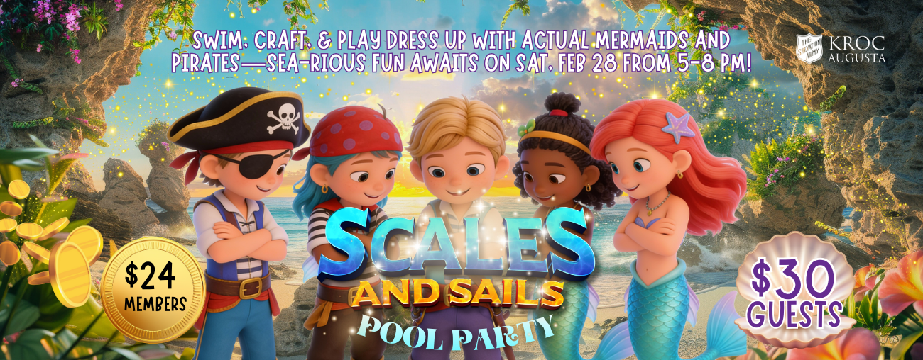 Dive into a magical night at the Scales & Sails Pool Party at the Kroc pool! Kids, ages 5 to 12, are invited to swim, craft, and play alongside mermaids and pirates for an evening of fun. Kids are encouraged to dress up as their favorite mermaids or pirates and enjoy themed activities, splashing in the pool, and unforgettable photo moments. Registration is required!