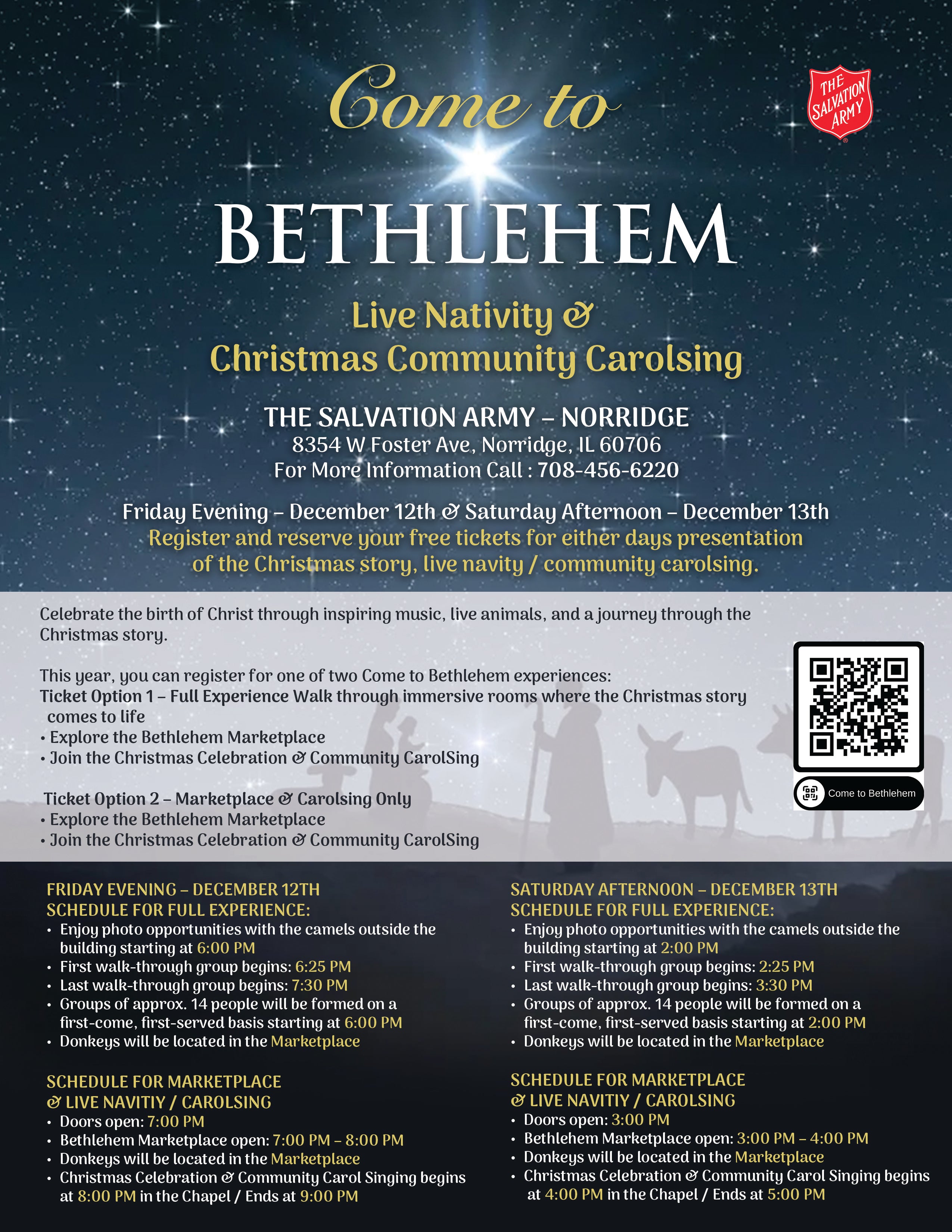 - Join the Christmas Celebration, Community CarolSing, and Live Nativity.