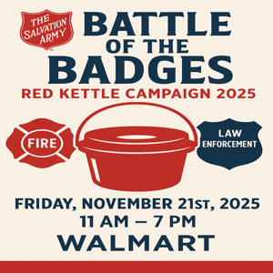 Join us Friday, November 21st, at both doors of Walmart from 11 AM to 7 PM for an epic Red Kettle showdown!