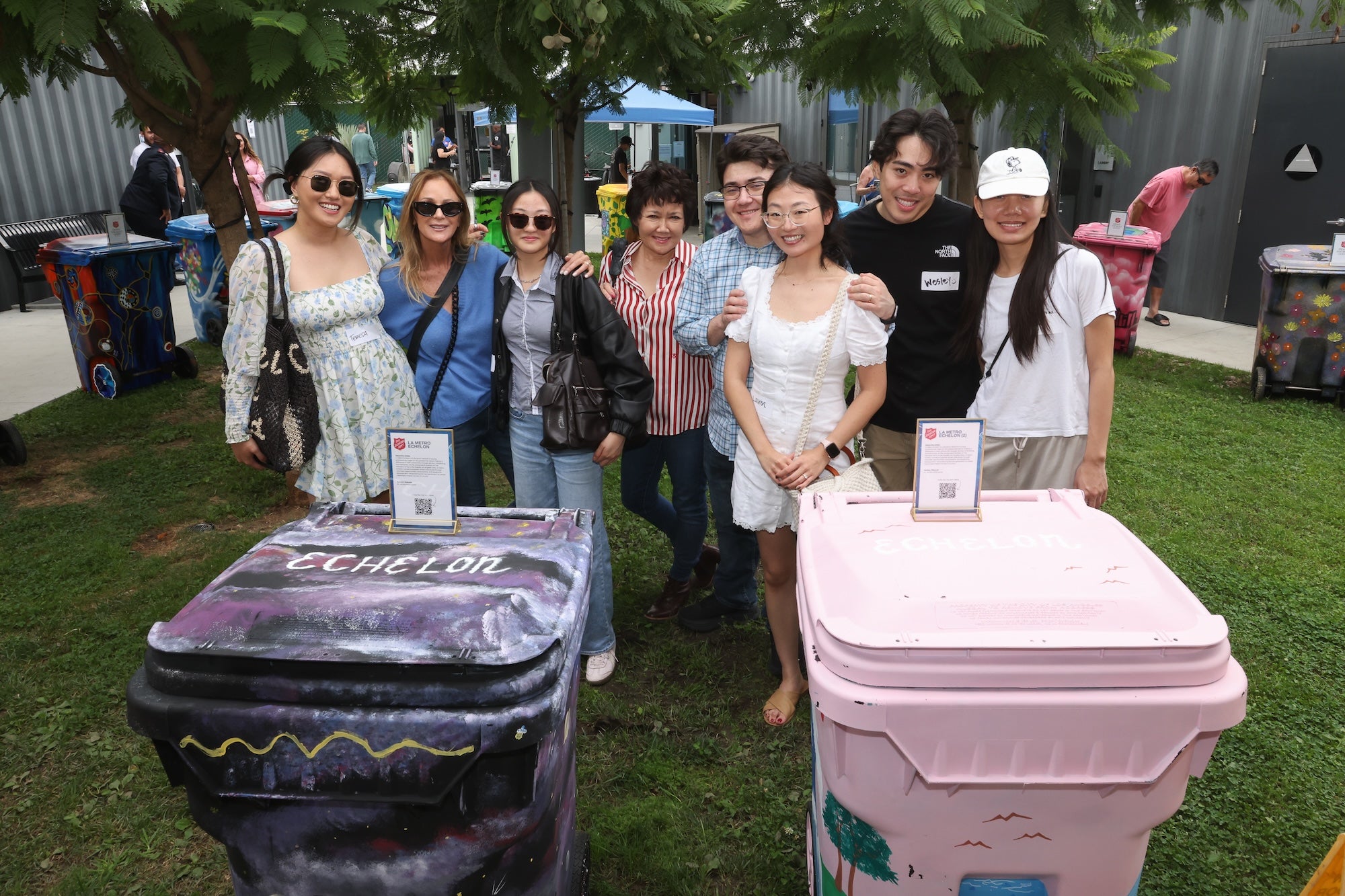 Captivating hand-painted bins lined the outdoor courtyard of The Salvation Army’s Lafayette Bridge Housing Shelter in the Koreatown neighborhood of Los Angeles, transforming the shared space into a vibrant fundraiser art walk.