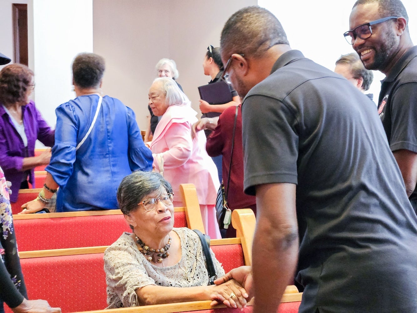 On Friday afternoon, the group travelled just around the corner from the Kroc Center to visit the neighboring First Missionary Baptist Church. The SSS was blessed to follow the Baptist choir’s weekly rehearsal with a short concert, the host choir adding their heavenly voices to the tunes of “Nothing but the Blood” and “Total Praise.” In addition to thanking them for allowing this afternoon of joint worship, Major Egan thanked Reverend Eric Dickey, the church’s pastor, and Reverend Kordell Sims from St. Paul United Methodist Church, both of whom are current Salvation Army advisory board members, for their partnership in serving the community.