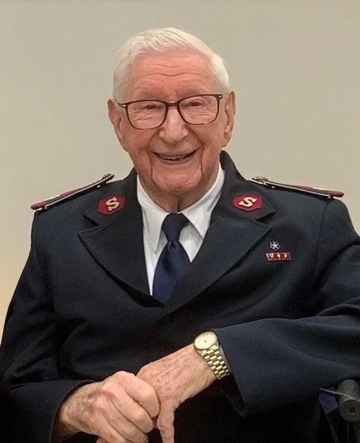 After 40 years as active Salvation Army officers, the couple retired in 1997 to Asheville, NC, where the colonel enjoyed playing in the corps band, singing in the corps songsters brigade, and participating in other corps activities. He continued to work in post-retirement, conducting program studies and working for the Emergency Disaster Services Department.