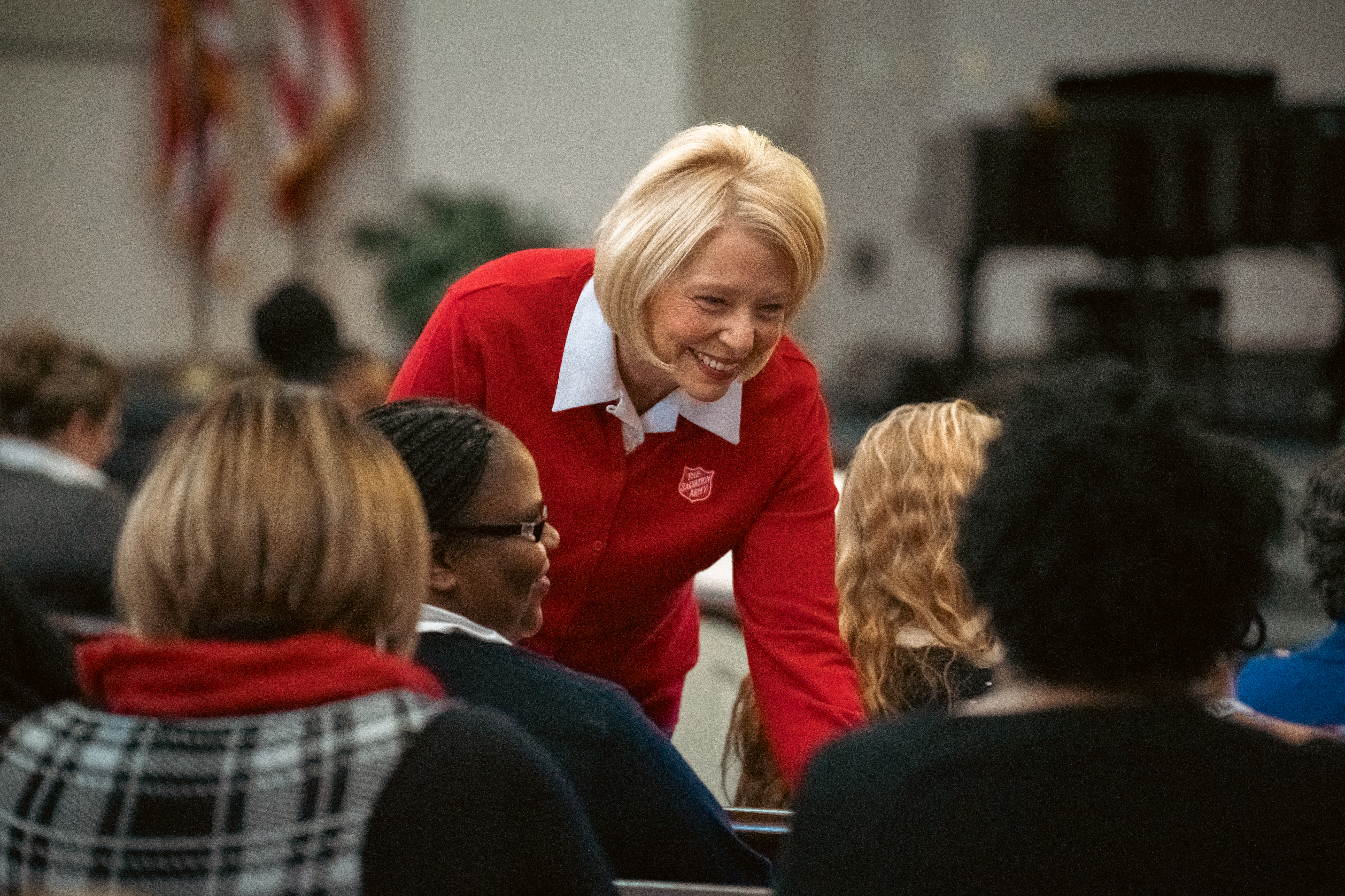 Commissioner Donna Igleheart then invited everyone to find a seat in the chapel, explaining that the idea for this event had stemmed from the Territorial Women Officers Retreat (TWOR) held in January. After seeing how impactful TWOR was for the women officers of the Southern Territory, the women’s department recognized a similar need to minister to women employees.