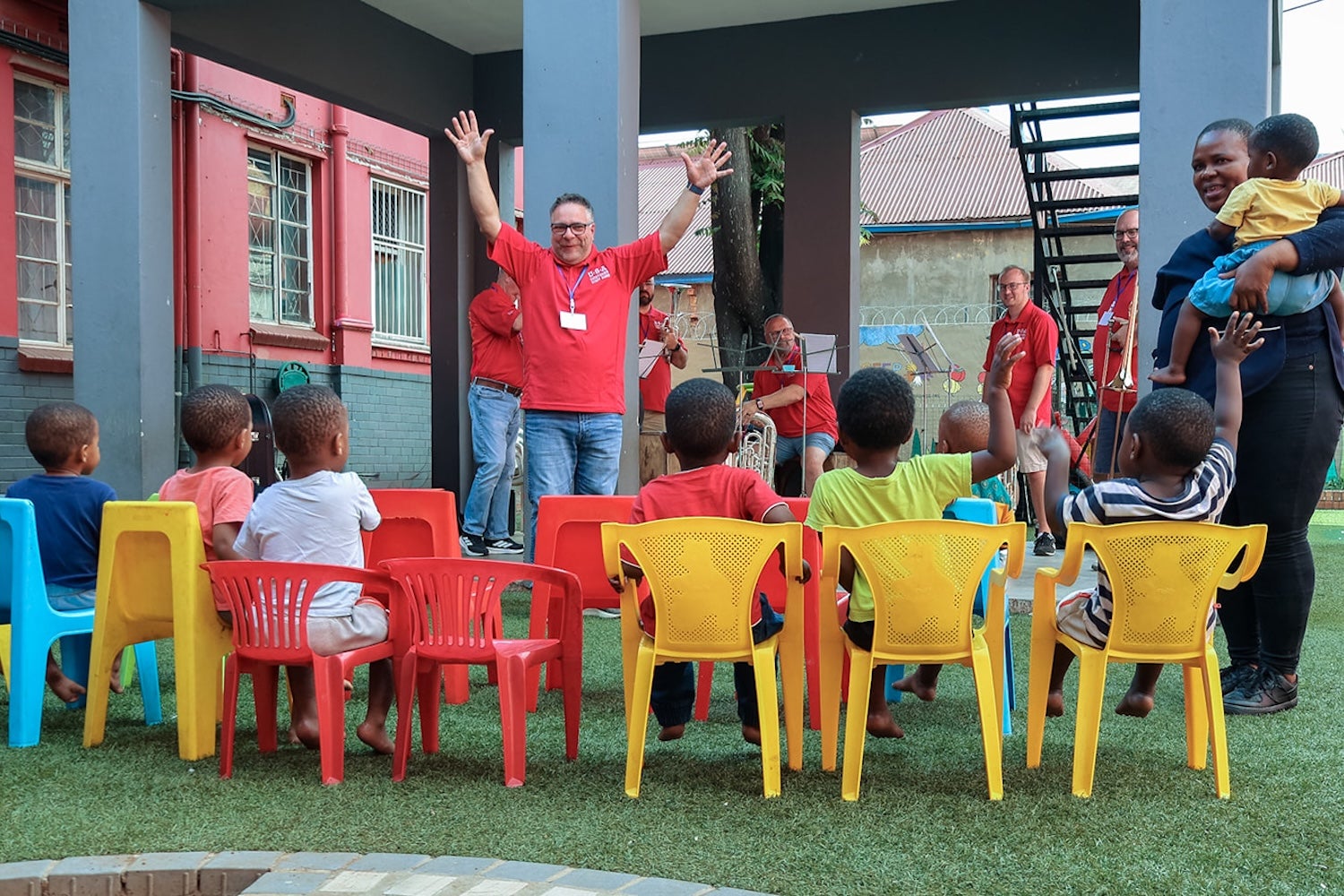 While the busy camp schedule persisted, the band visited a pair of Salvation Army children’s homes in the area, ministering to local youth with not only music but also fellowship. A small ensemble spent an afternoon at Ethembeni Children’s Home with infants and toddlers ages 0-3, and later in the week, the entire SSB spent an evening at Carl Sithole Children’s Home. The facility is home to nearly 100 children between the ages of 3-18, and SSB personnel toured the grounds before engaging in a concert that will not soon be forgotten.