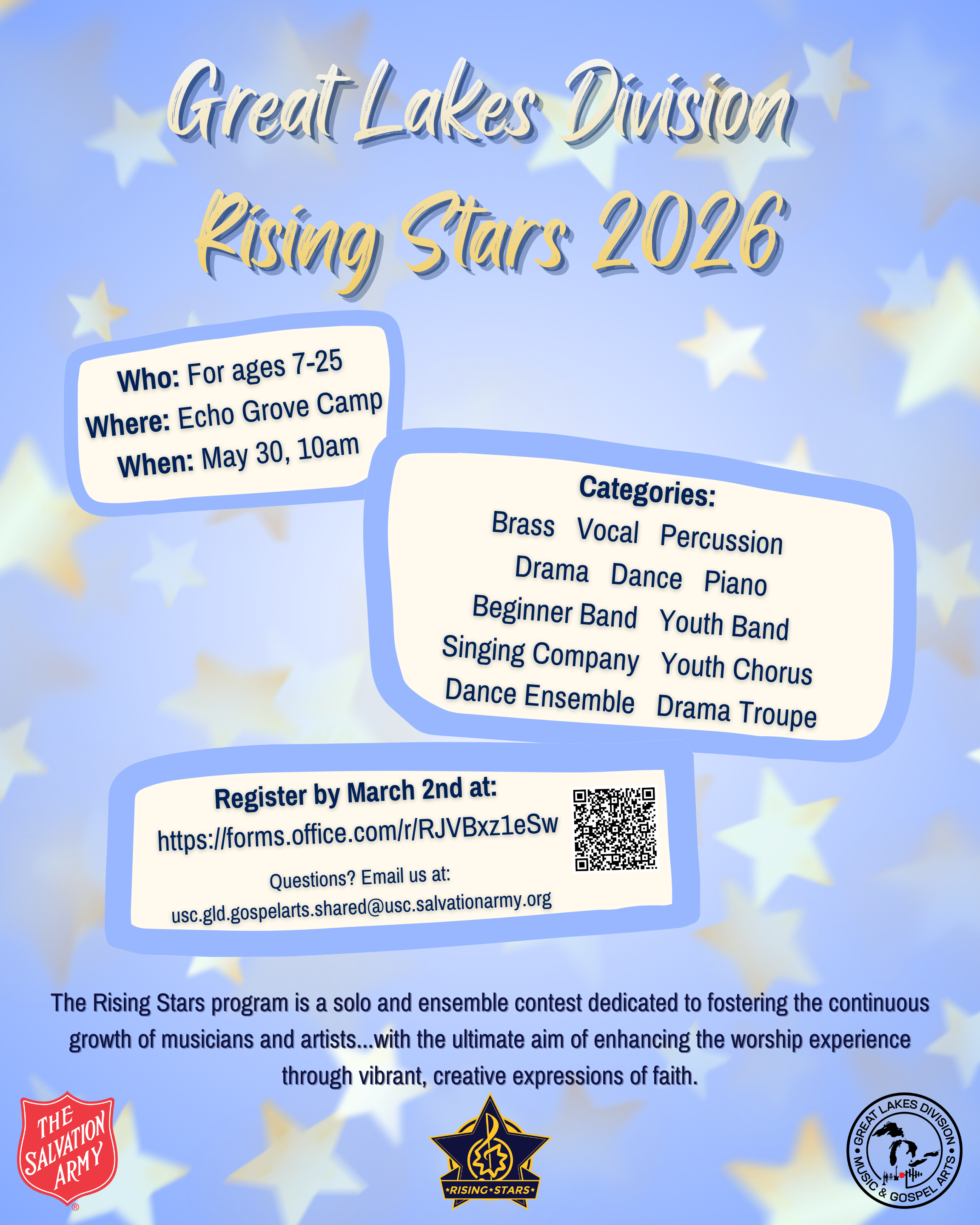Ensemble Categories: Beginner Band, Youth Band, Singing Company, Youth Chorus, Dance Ensemble, Drama Troupe