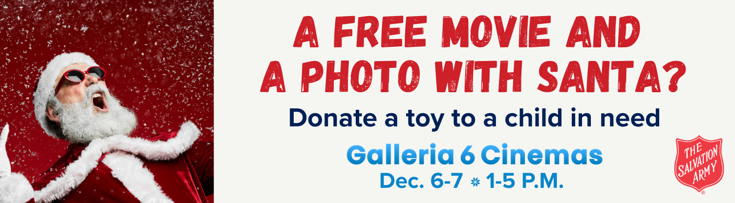 Mark your calendars for Dec. 6-7 and help make a difference in a child's Christmas. From 1–5 p.m. each day, bring a new, unwrapped toy valued at $5 or more to Galleria 6 Cinema, and you'll receive a FREE ticket coupon (valid for redemption through Dec. 18). On weekends, the coupon is good for movies before 5 p.m.