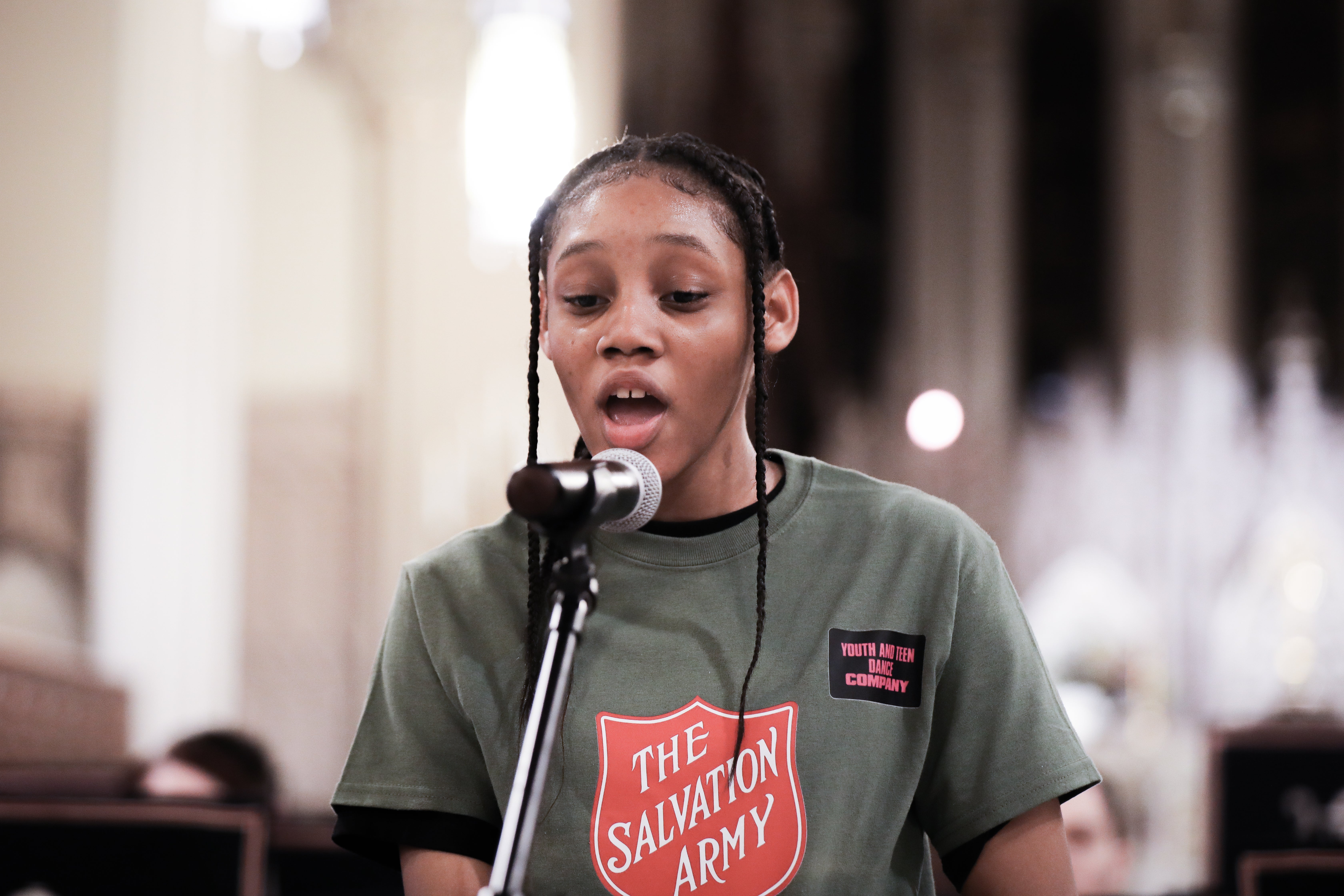 A student from one of The Salvation Army New York's music and creative arts program singing at an Annual Benefit Concert.