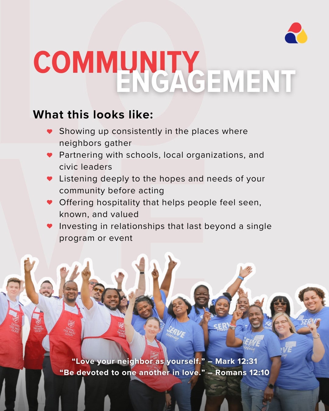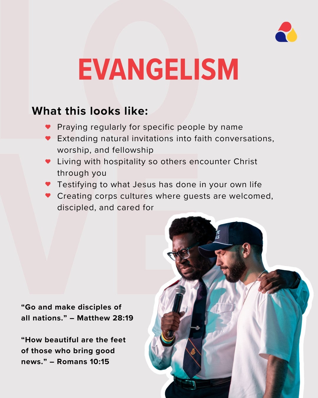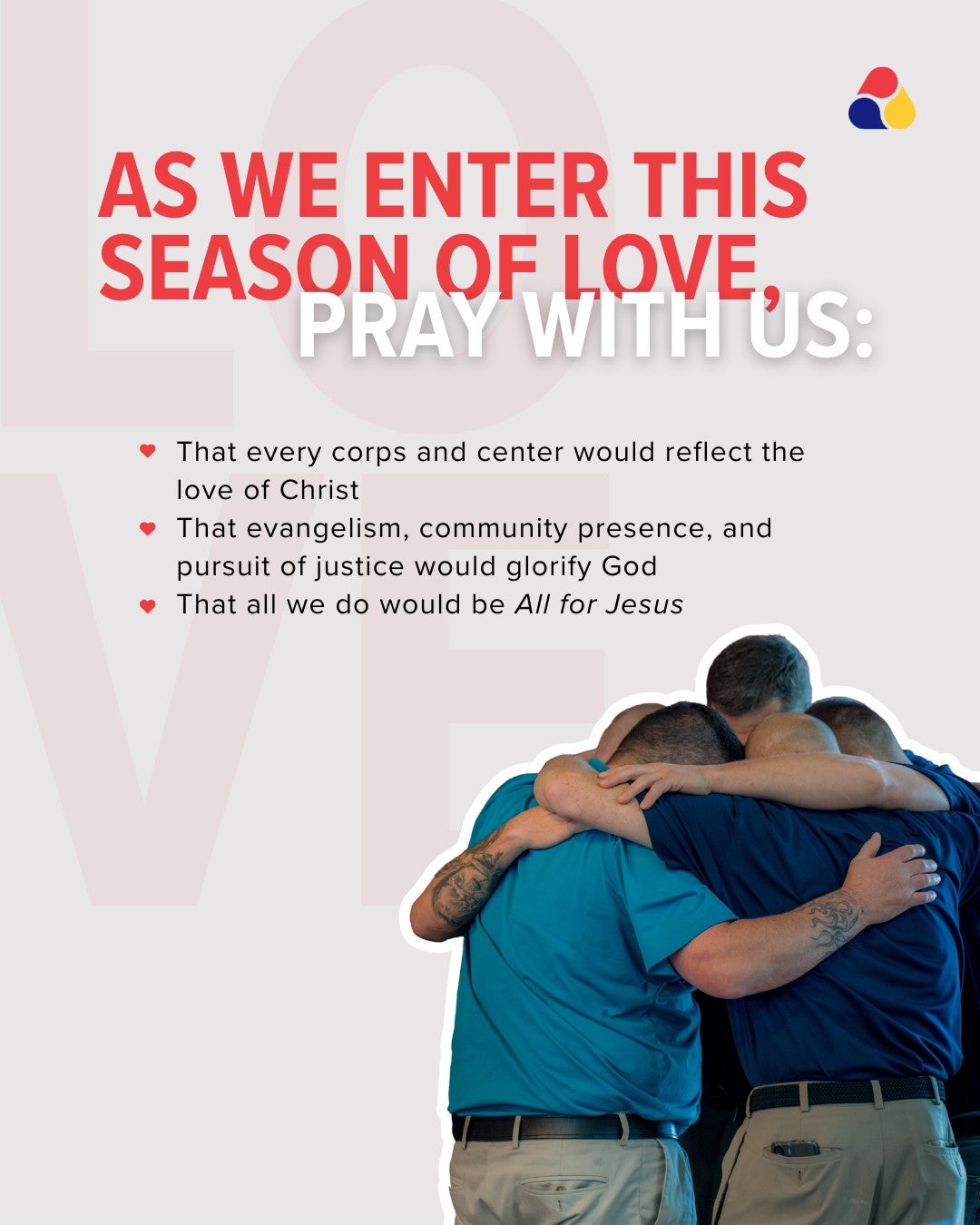 We are empowering every Salvationist—and everyone who feels called—to live out Christ’s love in word and deed. From building meaningful relationships, to advocating for biblical justice, to sharing the Good News, LOVE is at the heart of everything we do. Together, we can transform lives and communities, one act of love at a time.