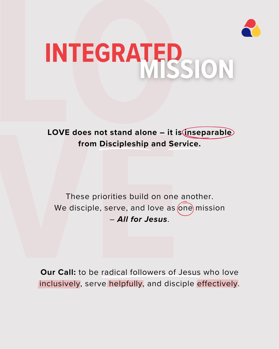 “Share Christ’s heart through action—building relationships, spreading hope, and seeking justice.”
